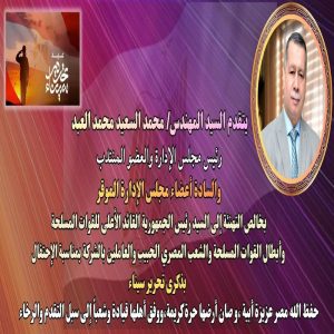 يتقدم السيد المهندس/ محمد السعيد محمد العبد -رئيس مجلس الإدارة والعضو المنتدب ، بخالص التهنئة إلى السيد رئيس الجمهورية القائد...