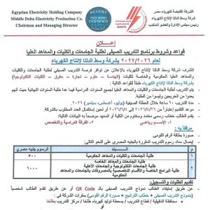 تحت رعاية السيد المهندس/ محمد السعيد محمد العبد ـ رئيس مجلس الإدارة والعضو المنتدب، تعلن شركة وسط الدلتا لإنتاج الكهرباء...