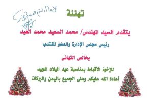 تقدم السيد المهندس/ محمد السعيد محمد العبد رئيس مجلس الإدارة والعضو المنتدب ، بأرق التهاني وأطيب الأماني للأخوة الأقباط بمناسبة...