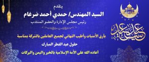 يتقدم السيد المهندس/ رئيس مجلس الإدارة والعضو المنتدب بأرق الأمنيات وأطيب التهاني لجميع العاملين بالشركة بمناسبة حلول عيد الفطر المبارك...