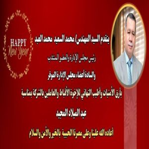 يتقدم السيد المهندس/ محمد السعيد محمد العبد ـ رئيس مجلس الإدارة والعضو المنتدب، بخالص التهاني للأخوة الأقباط بمناسبة عيد الميلاد...