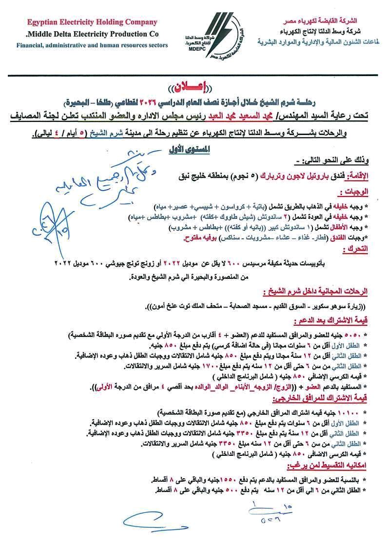 يسر لجنة المصايف والرحلات بشركة وسط الدلتا لإنتاج الكهرباء ، أن تعلن عن تنظيم رحلة إلى مدينة شرم الشيخ .
