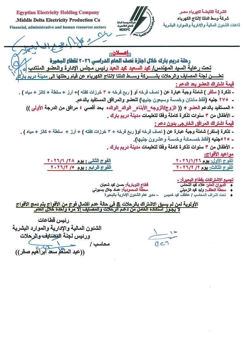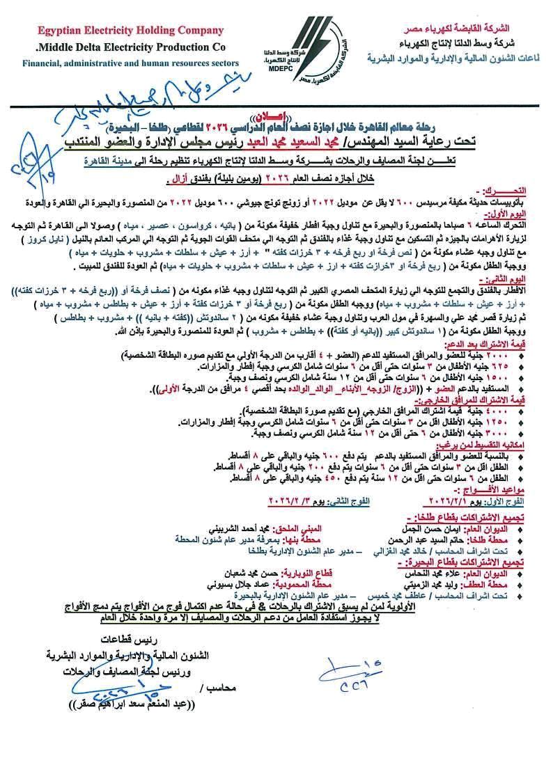 يسر جمعية الرعاية الإجتماعية للعاملين بشركة وسط الدلتا لإنتاج الكهرباء بالبحيرة أن تعلن عن رحلة العمرة بشهر شعبان يوم 2026/1/21 لمدة 15 يوم (14 ليلة).